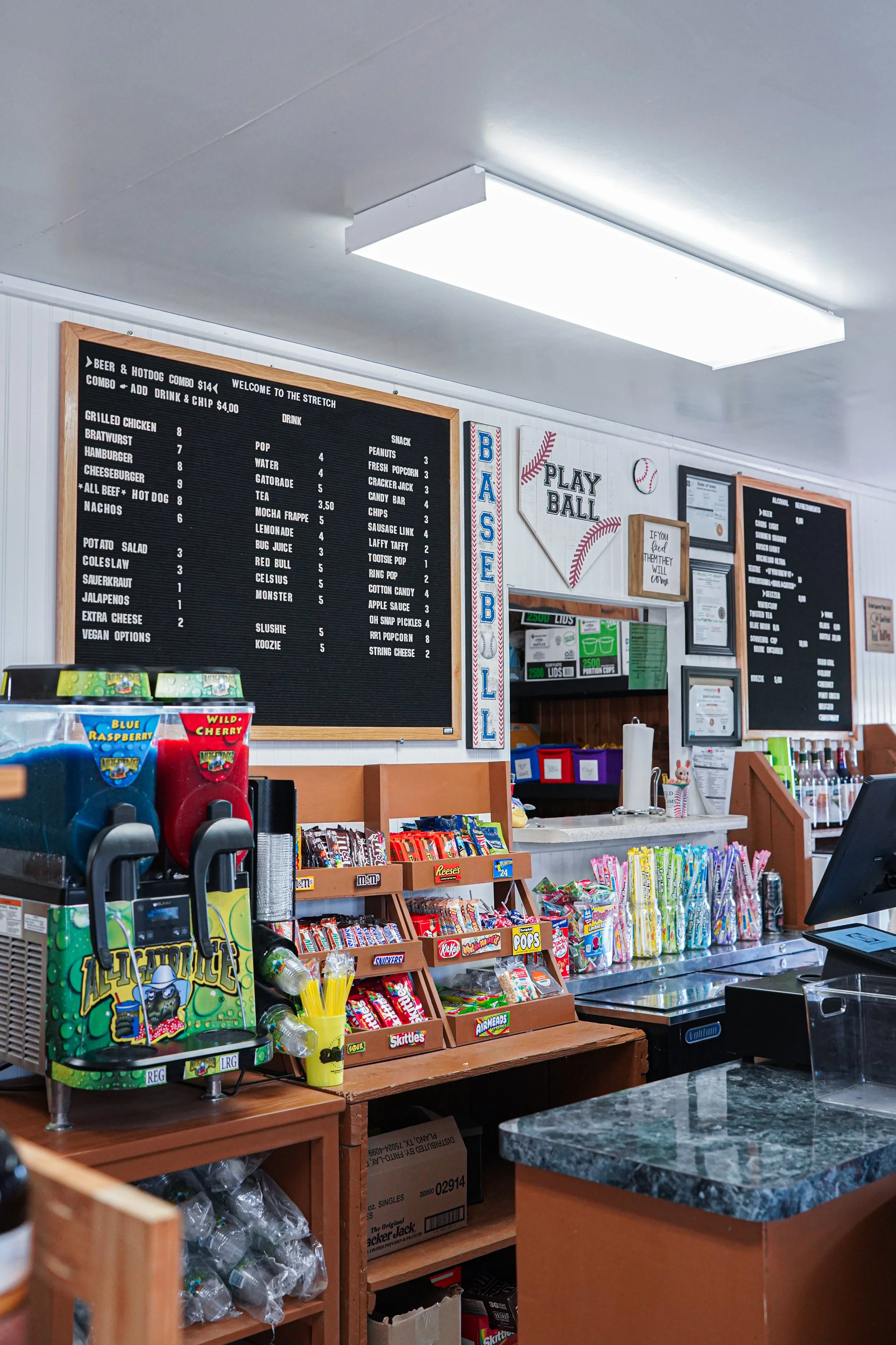 The Stretch offers concession stand favorites including hot dogs, popcorn, candy, and a whole lot more. Perfect for a quick lunch or game-day snack.